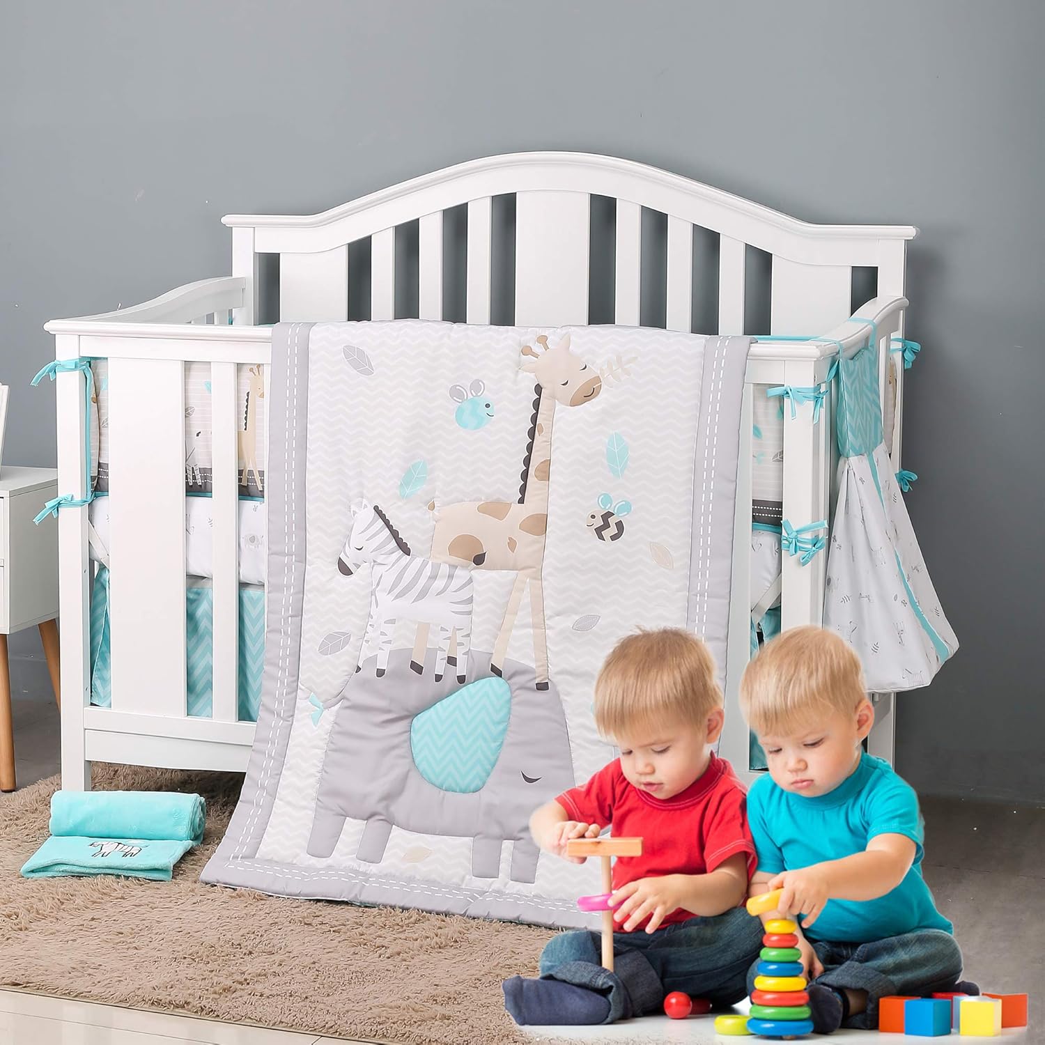 Baby Elephant Crib Bedding Set Gender Neutral Elephant Baby Bedding Just Baby Designs The mod elephant crib bedding collection from sweet jojo designs features a fun pachyderm, bird, and leaf theme in a bold turquoise and soft grey, accented with green and orange.